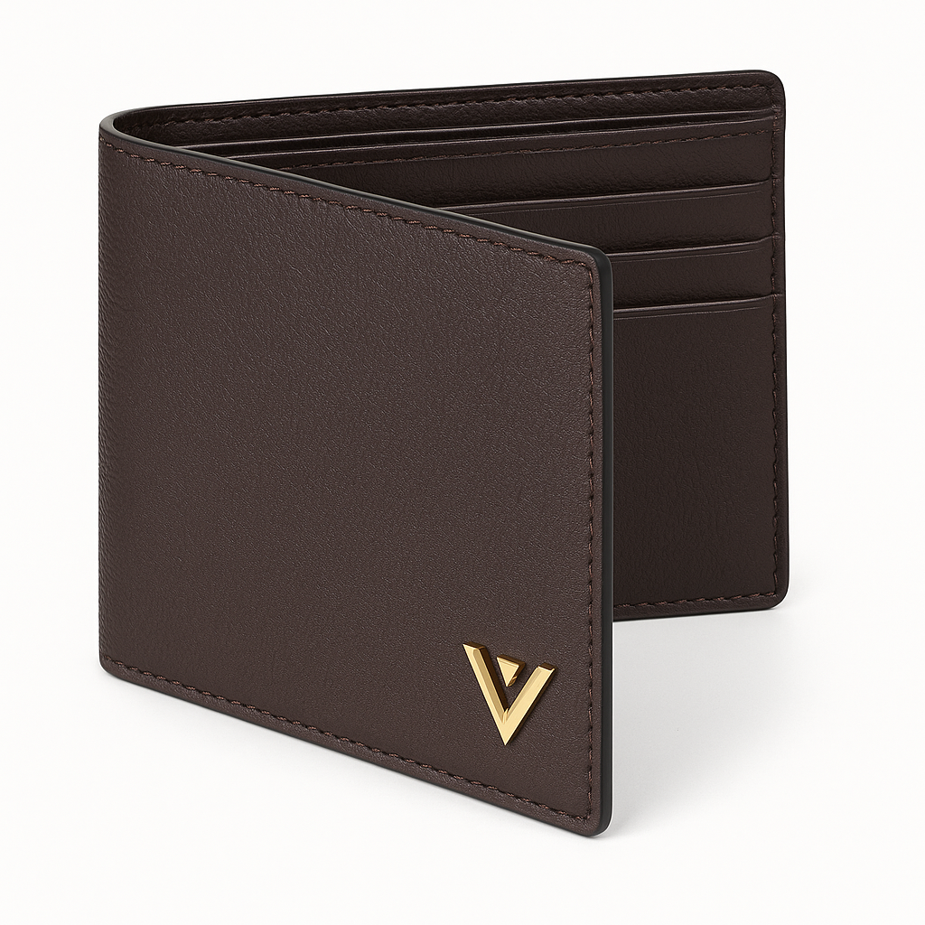 Men’s leather wallet crafted from premium natural dark brown leather. Compact, water-resistant, and designed to hold cash and cards securely. A timeless and luxurious gift for men with refined taste.